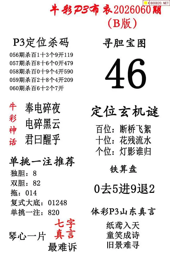 牛彩体彩P3布衣2026年060期AB版图谜(精华版)