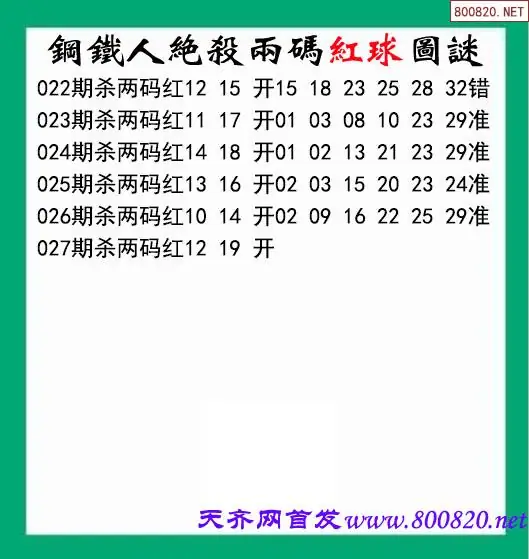 双色球26027期钢铁人杀两红图谜