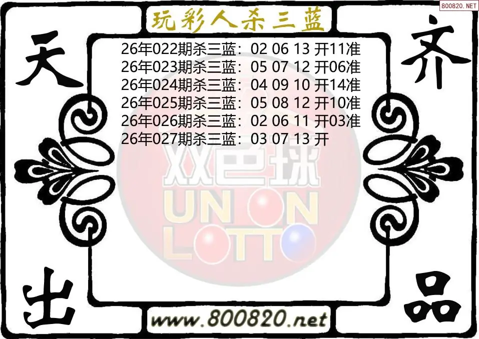 玩彩人26年027期双色球杀三蓝图谜