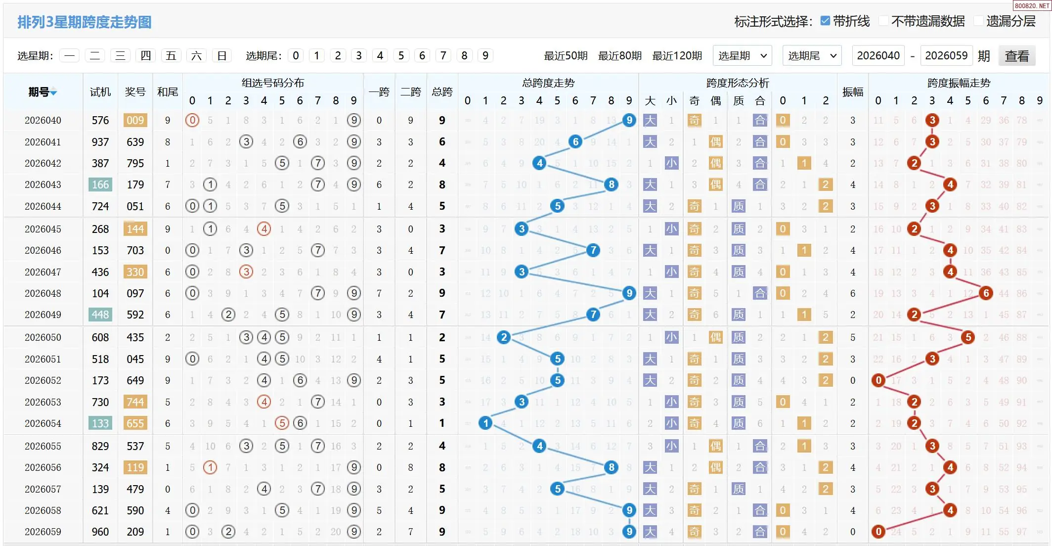 26年060期体彩P3跨度走势图如下: