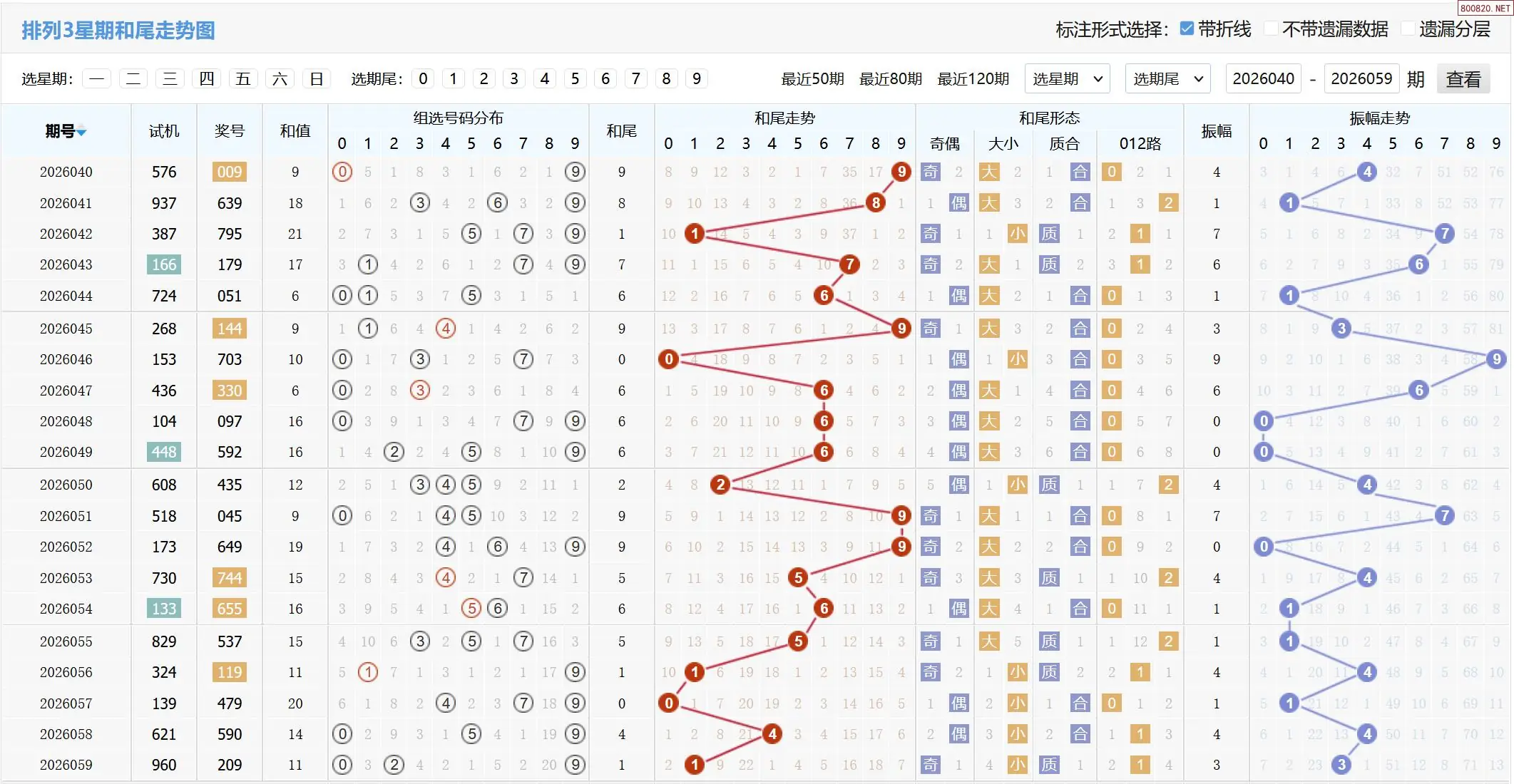 2026060期体彩P3基本走势图如下: