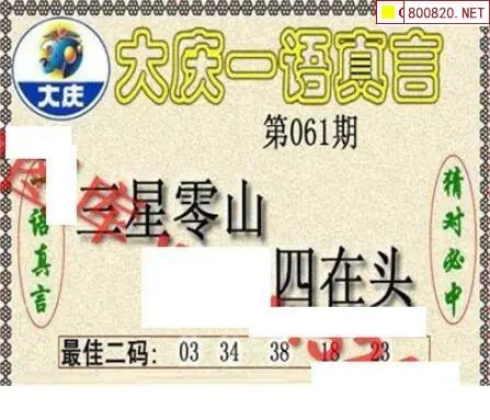 大庆图26061期大庆五码+一语真言黑胆3d图谜