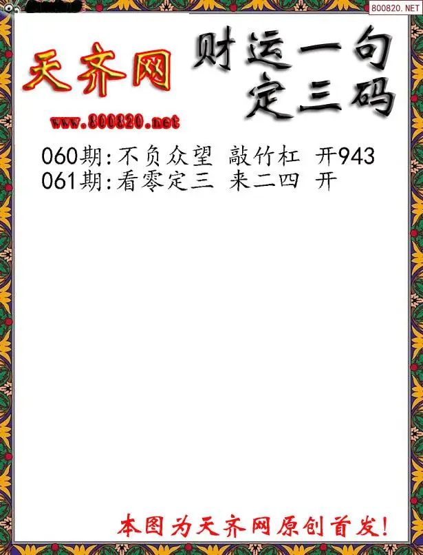 061期财运3D一句定三码字图谜