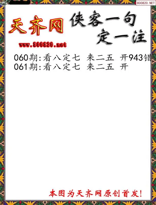 061期侠客一句3D定三码字图谜