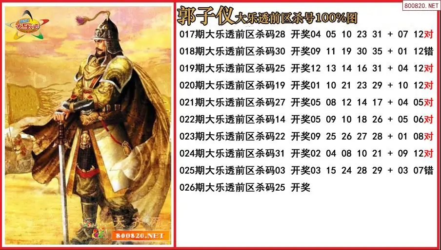 郭子仪2026026期大乐透前区杀号100%图-原创