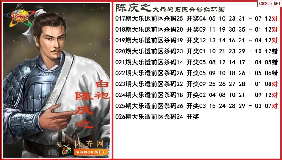陈庆之2026026期大乐透前区杀号红球图-原创