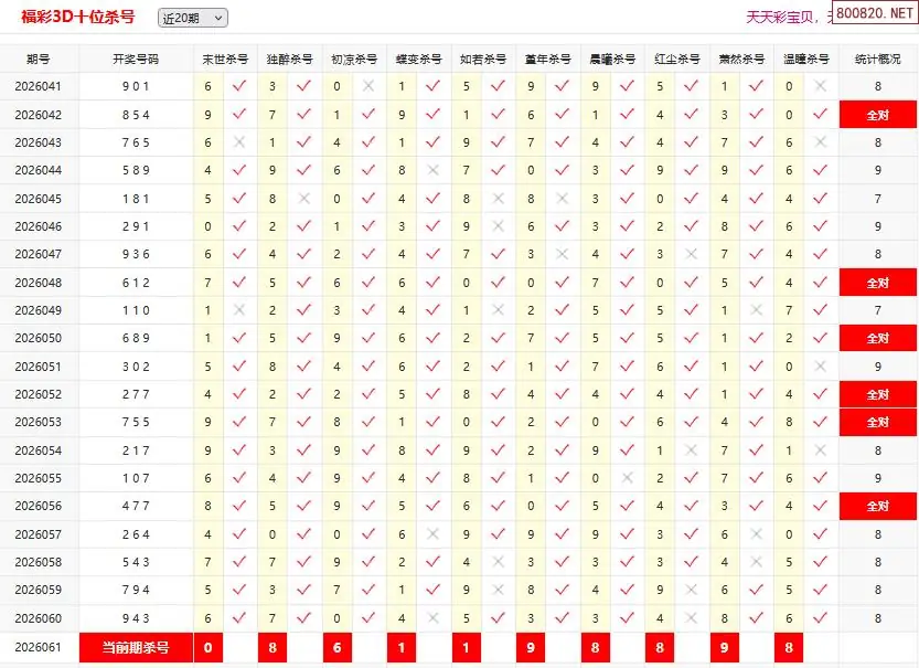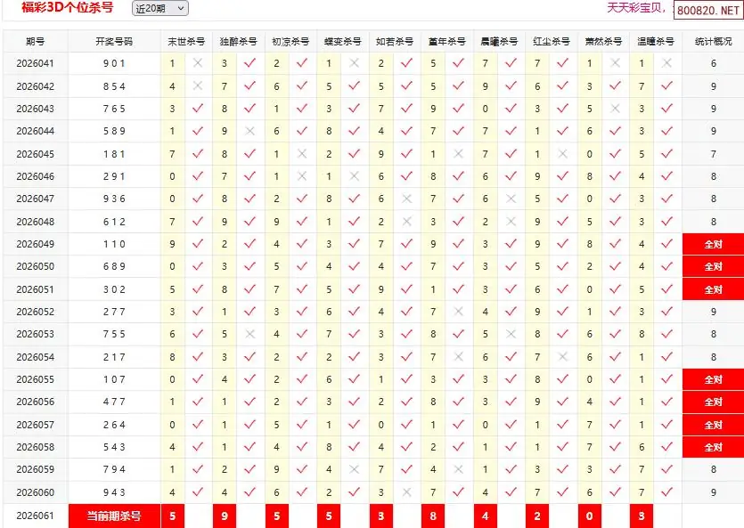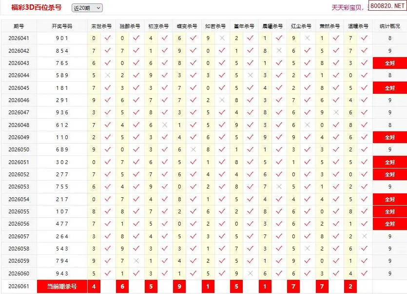 26061期彩宝贝福彩3D百十个位杀号