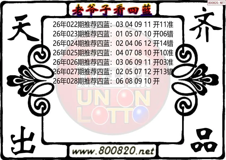 老爷子26年028期看双色球四蓝图谜