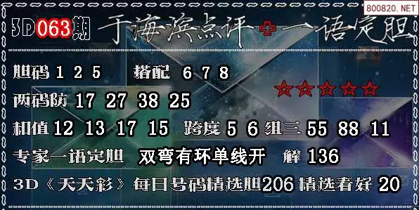 3D 《天天彩》每日号码精选胆206 精选看好20