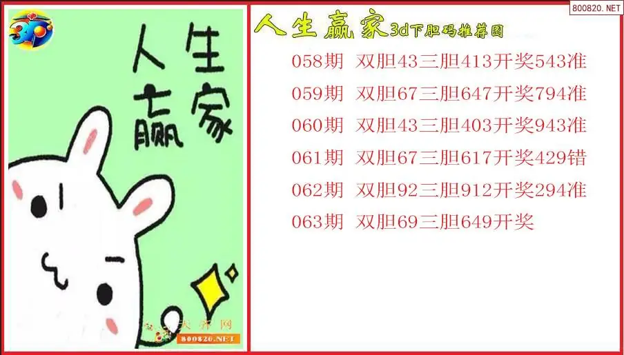人生赢家2026063期3d下胆码推荐图(原创)