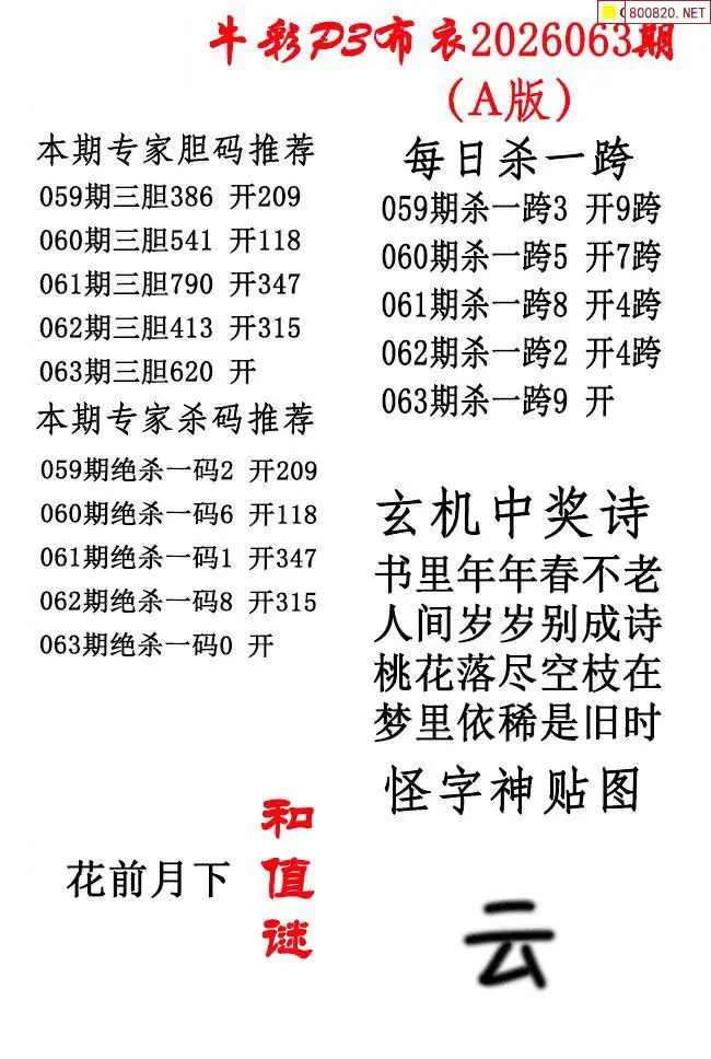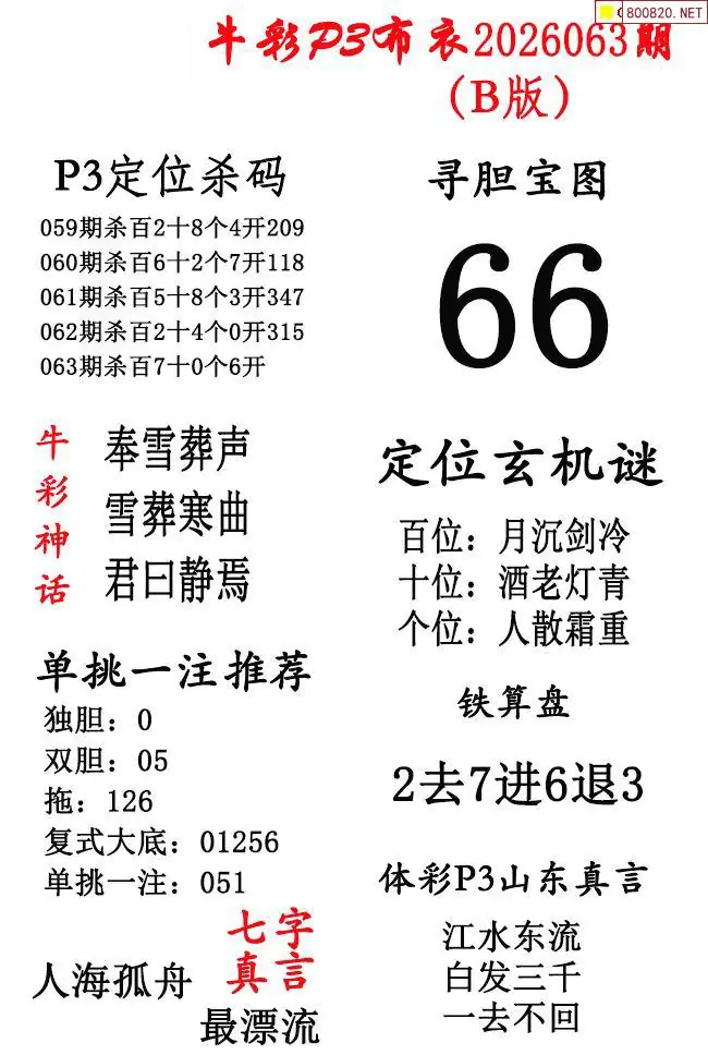 牛彩体彩P3布衣2026年063期AB版图谜(精华版)