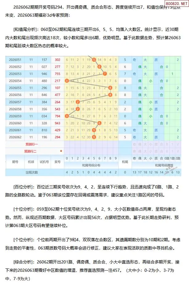 福彩3D第2026063期[玩彩高手]最准最新3d号码预测
