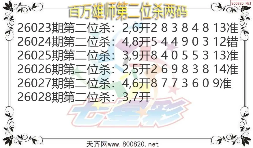 百万雄师26年028期七星彩杀号图谜