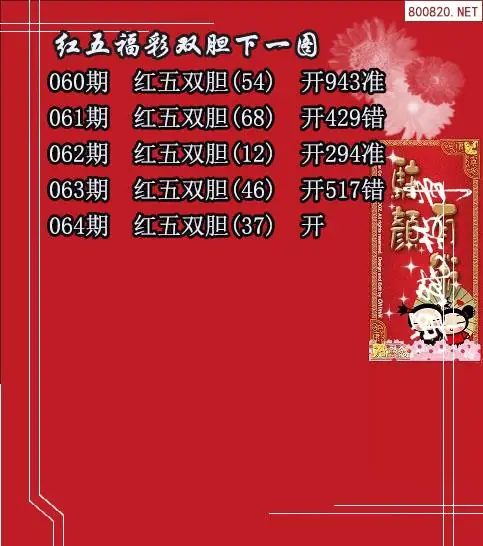 天齐福彩3d2026064期红五双胆