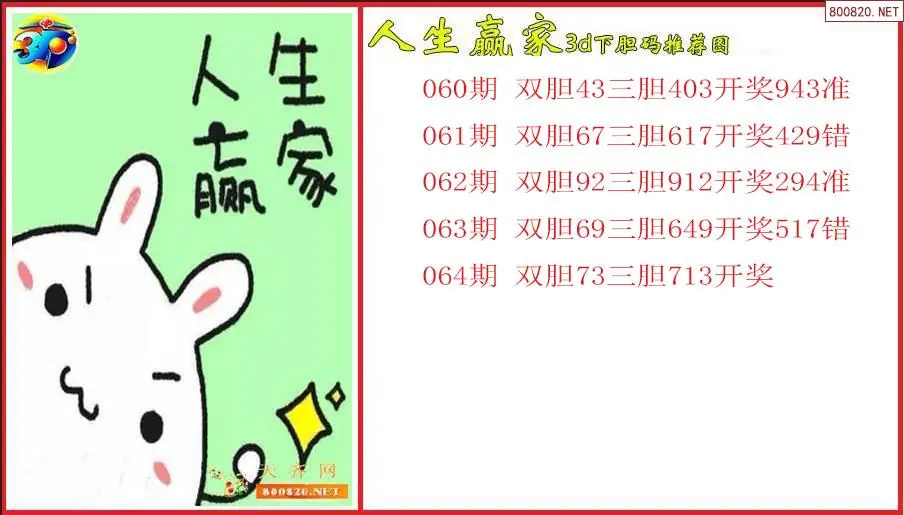 人生赢家2026064期3d下胆码推荐图(原创)