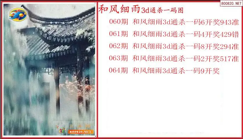 和风细雨2026064期3D通杀一码图(原创)