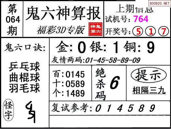 鬼六图26064期鬼六神算报+鬼六胆码图迷