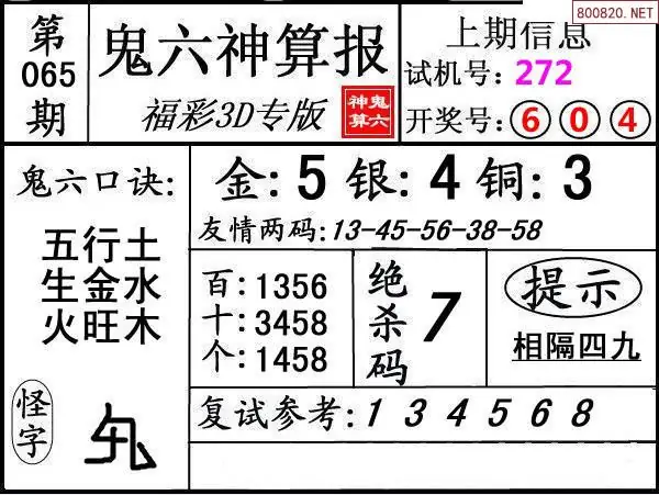 鬼六图26065期鬼六神算报+鬼六胆码图迷