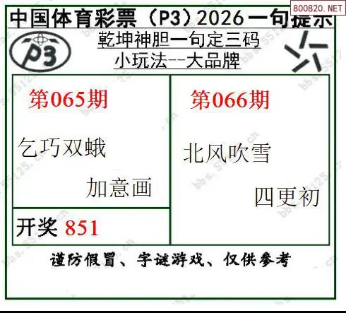 2026066期乾坤一句p3定三码图谜