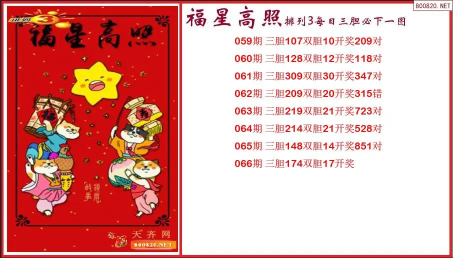 福星高照2026066期排列3每日三胆必下一图(原创)