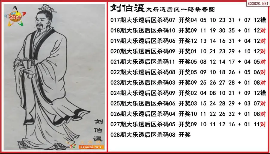 刘伯温2026028期大乐透后区一码杀号图-原创