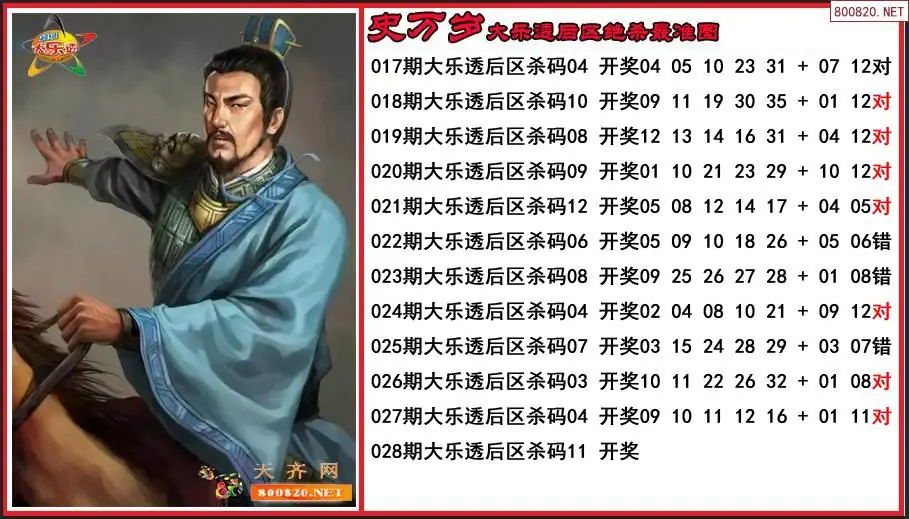 史万岁2026028期大乐透后区绝杀最准图-原创