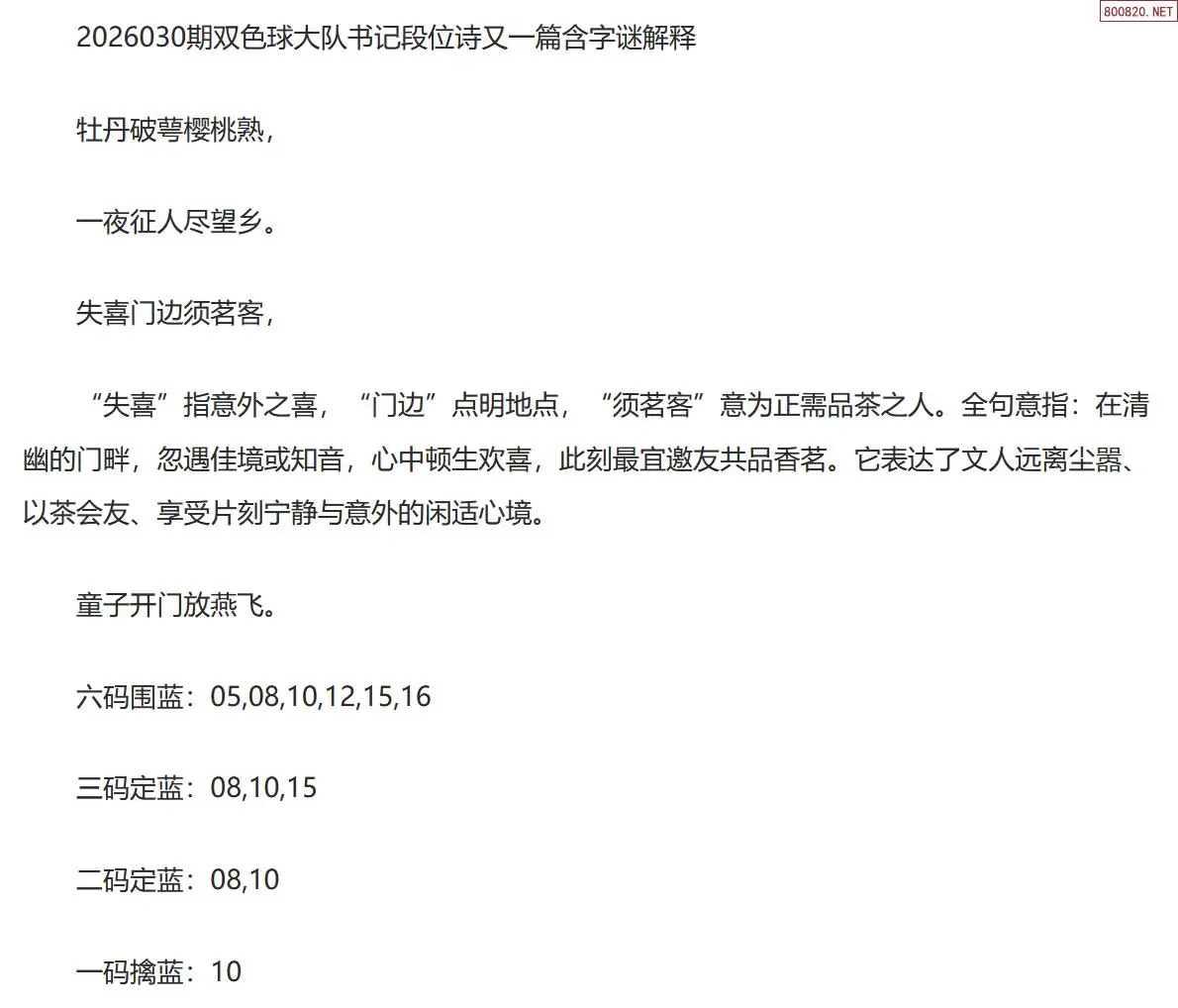 9 双色球26030期牛彩字谜诗迷汇总(天