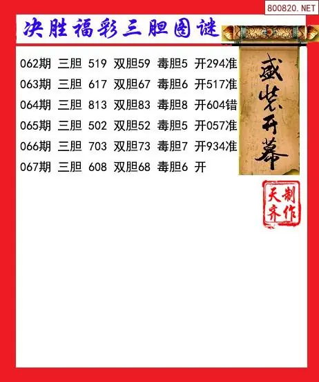 26年067期决胜福彩三胆3d图谜(天齐网原创)