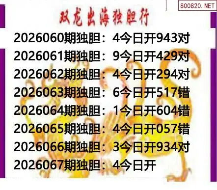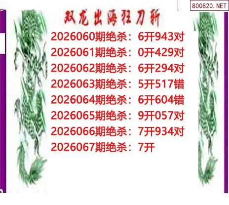 26067期双龙双胆杀码3d图谜
