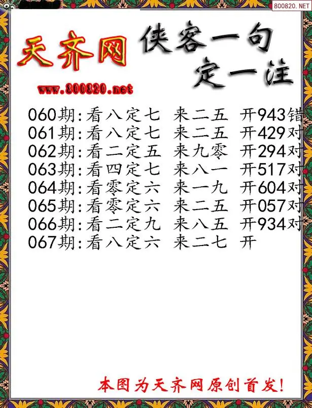 067期侠客一句3D定三码字图谜