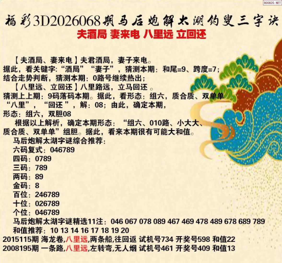 27 26年068期[小新]解3d太湖四句玄机