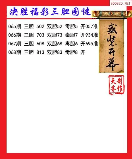 26年068期决胜福彩三胆3d图谜(天齐网原创)