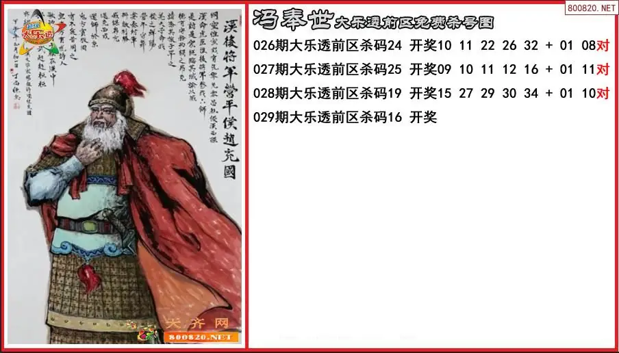 冯奉世2026029期大乐透前区免费杀号图-原创