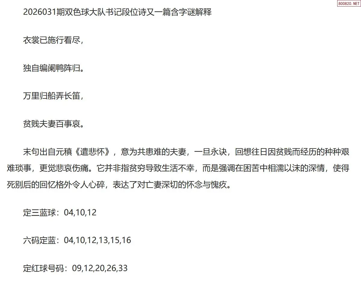 9 双色球26031期牛彩字谜诗迷汇总(天