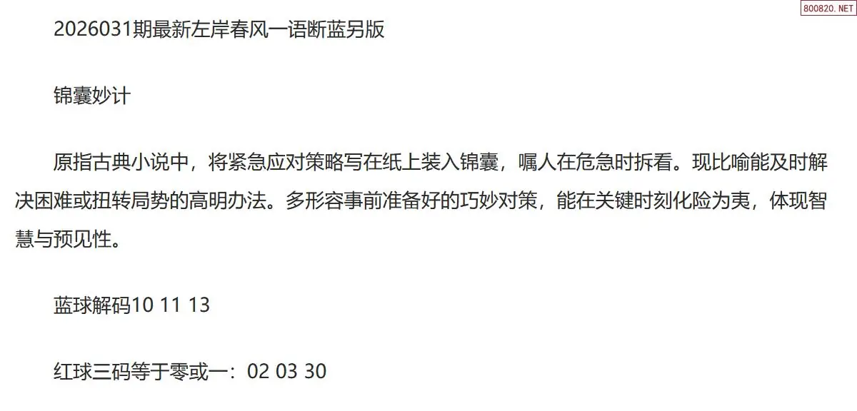 6 双色球26年031期左岸春风一语断蓝