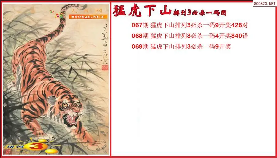 猛虎下山2026069期排列3必杀一码图(原创)