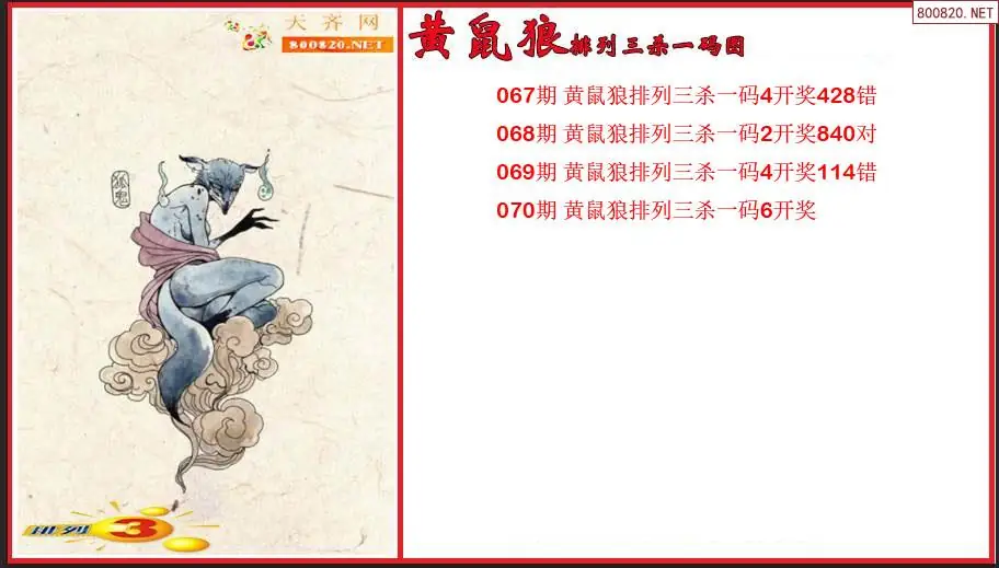 排列3第2026070期黄鼠狼杀一码图(原创)