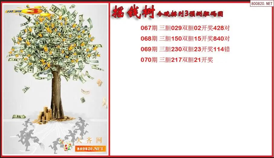 2026年摇钱树070期今晚排列3预测胆码图 (原创)