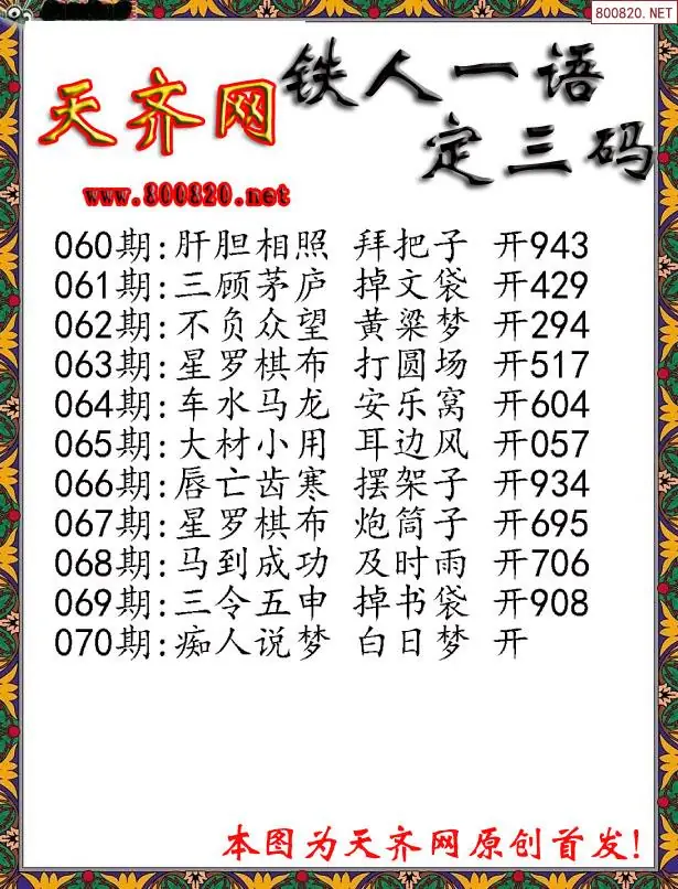 070期3D铁人一句定三码字图谜