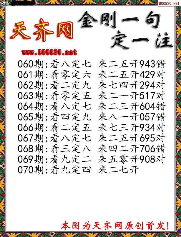070期3D福彩金刚一句定三码字图谜