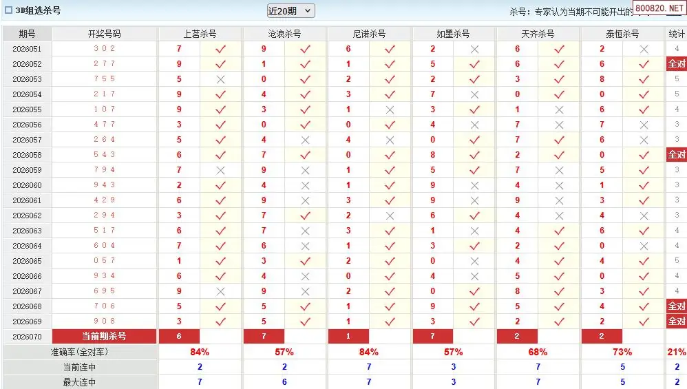 福彩3d26年070期澳客专家杀组选号码