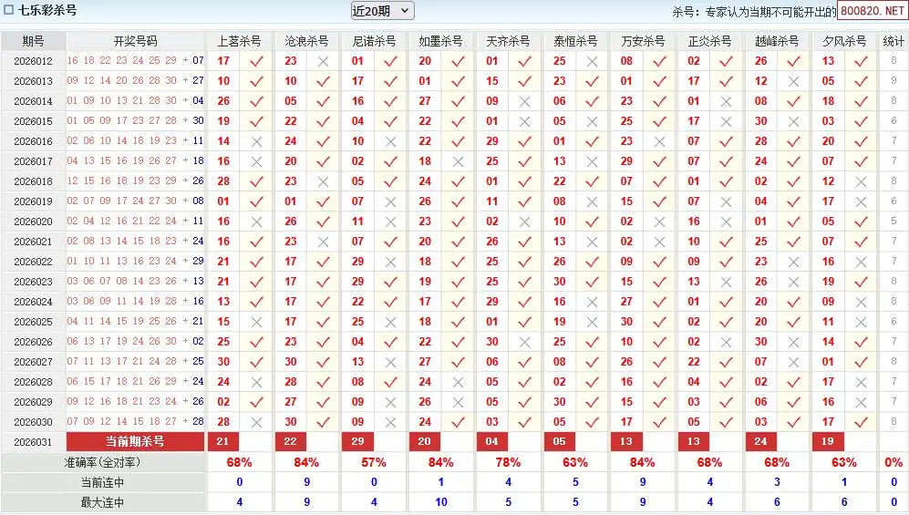 2026031期澳客七乐彩专家杀号