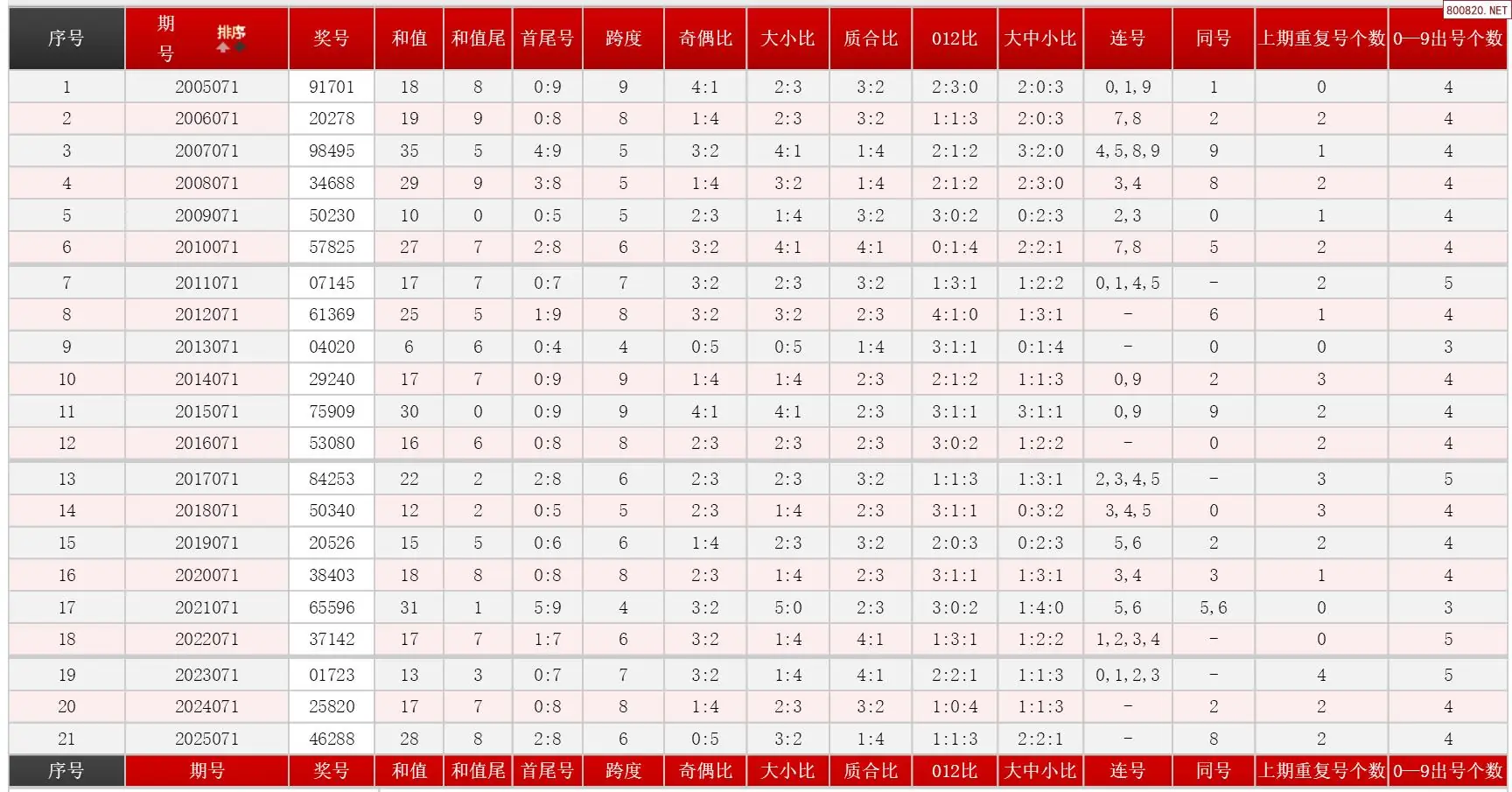 071期体彩P5历史同期对比图表+近期走势图分析