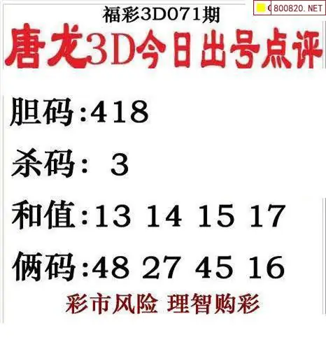 唐龙图26071期唐龙3d今日出号点评图迷