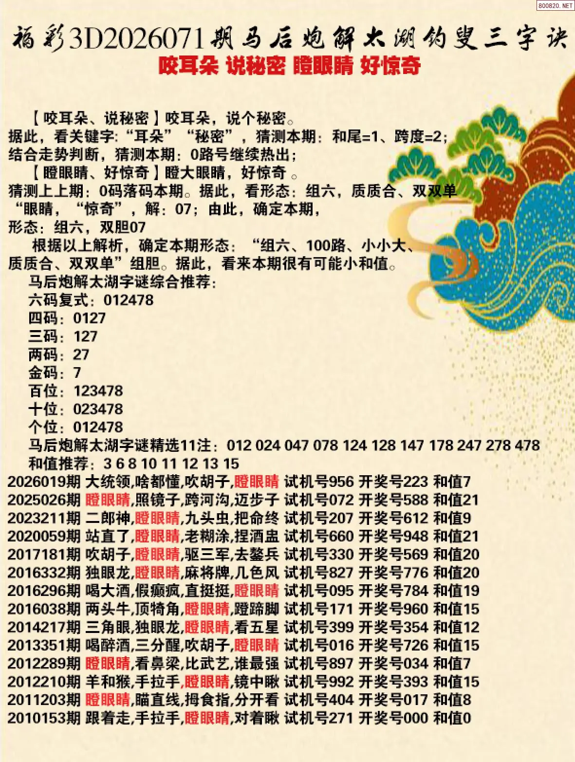 12 26年071期[瞬间]解太湖3d太湖字谜