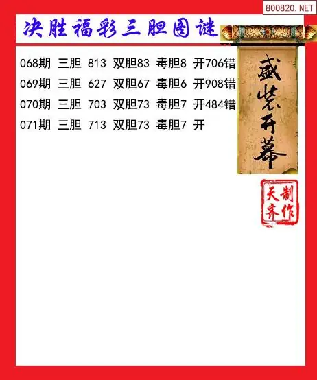 26年071期决胜福彩三胆3d图谜(天齐网原创)