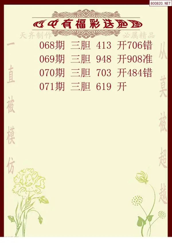 2026年071期心中有福福彩送胆图谜(天齐网原创)