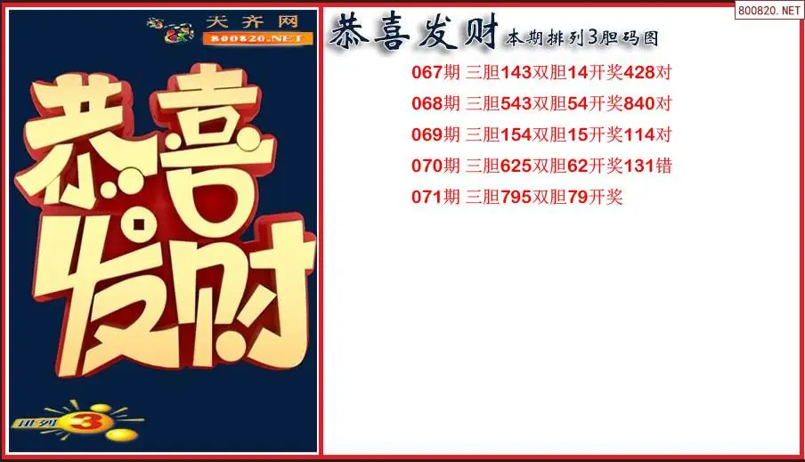 恭喜发财2026071期本期排列3胆码图(原创)