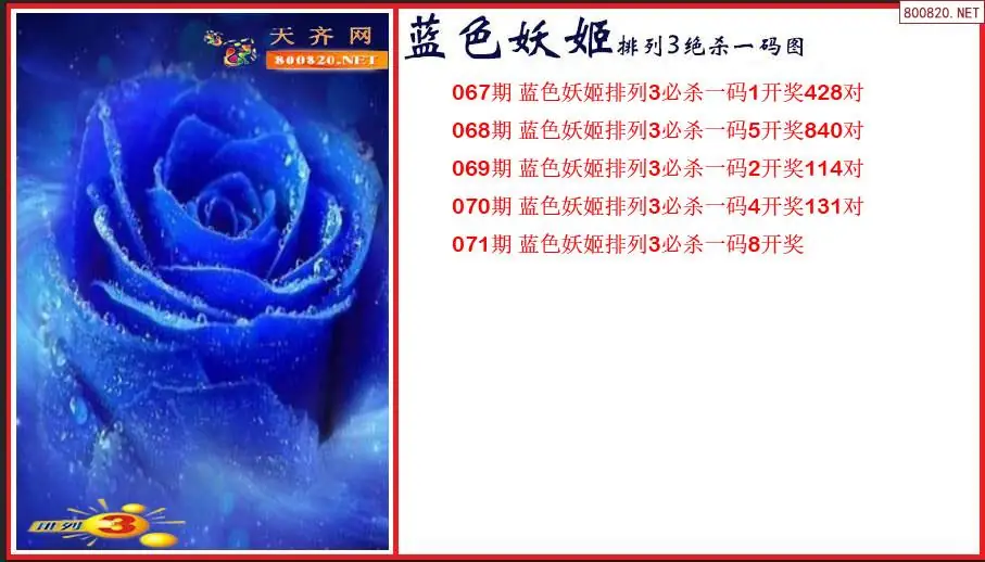 2026年蓝色妖姬071期排列3绝杀一码图(原创)