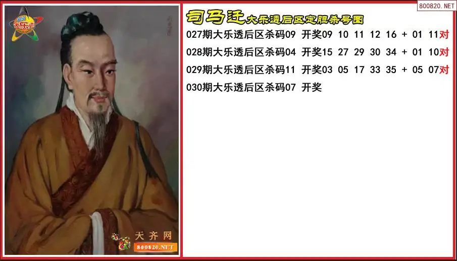 司马迁2026030期大乐透后区定胆杀号图-原创